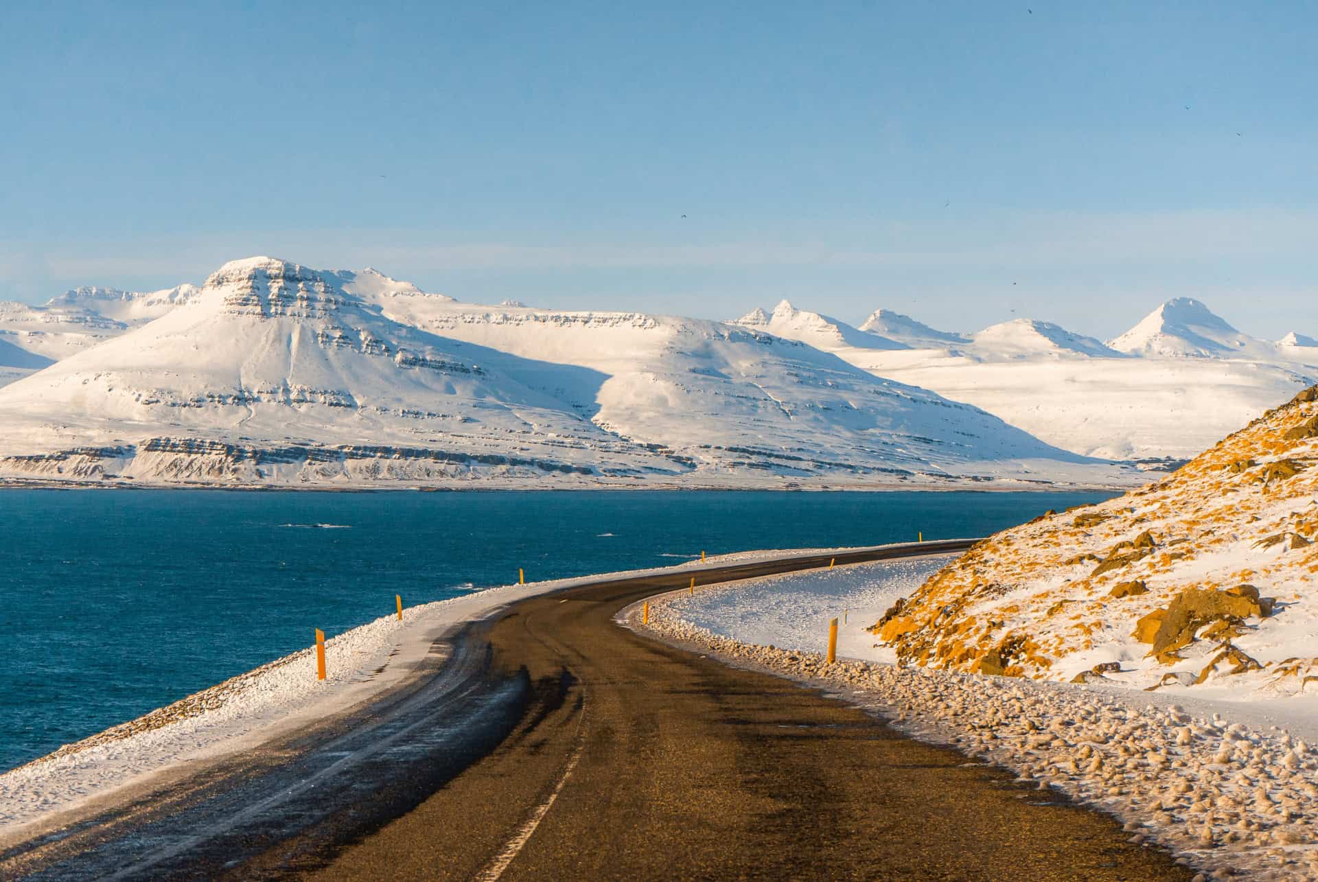 Une fois arrivé à l’aéroport, vous pourrez directement louer une voiture ou un van pour rejoindre le village, qui se trouve à seulement 40 min de route d’Egilsstaðir. Il sera bien plus facile de faire le tour des fjords de l’est en partant de là plutôt qu’en faisant toute la route depuis Reykjavik, sauf si vous partez pendant un long séjour en Islande. Pour la location de véhicule, je vous recommande de vous renseigner auprès de prestataires locaux comme Guide to Iceland qui sauront vous guider au mieux sur le choix de la voiture pour les conditions sur place 🚗